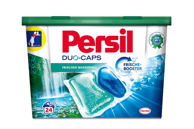 Die Duo-Caps-Produktrange von Persil wird um ein besonderes Duft-Talent ergänzt: die Duo-Caps Frischer Wasserfall. Sie kombinieren perfekte Sauberkeit und Pflege mit einem einzigartigen Frischegefühl für die Wäsche. Ausgestattet mit der Zwei-Kammer-Technologie sind die Duo-Caps optimal vordosiert und bieten ein perfektes Waschergebnis bei einfacher Anwendung.