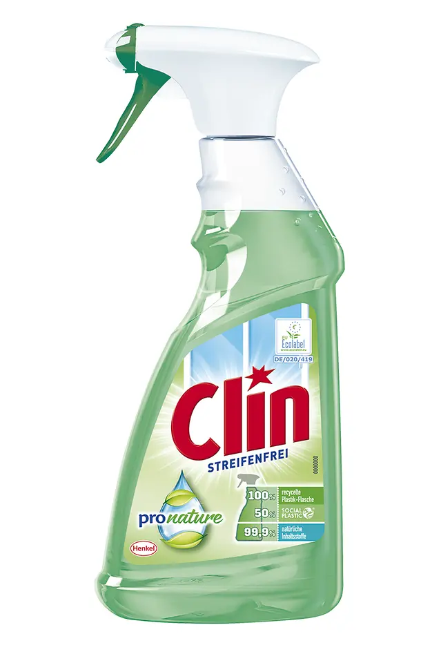 Clin ProNature erzielt mit seiner Formel, die zu 99,9 Prozent aus natürlichen Inhaltsstoffen besteht, überzeugende Reinigungskraft und saubere Wirkung. Zudem ist Clin ProNature Ecolabel-zertifiziert. Die Flasche stammt zu 100 Prozent aus recyceltem Material (rPET), wobei der Social Plastic-Anteil von 25 auf 50 Prozent verdoppelt wurde. In seinem Segment gilt Clin ProNature als Wachstumstreiber. Ein starkes Umweltstatement gibt auch der neue Clin ProNature Nachfüllbeutel ab. Mit seiner konzentrierten Formel - dem 250ml Konzentrat müssen nur noch 250ml Wasser beigegeben werden – sorgt er auch dafür, dass um 91 Prozent weniger Plastik zum Einsatz kommt2. Die Formel setzt zu 99,9 Prozent auf natürliche Inhaltsstoffe und sorgt für optimalen Glanz auf allen Oberflächen.
