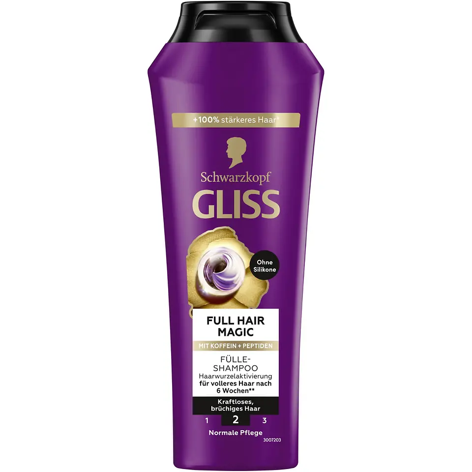 Viele Konsument:innen träumen von volleren Haaren? Schwarzkopf GLISS hat die Lösung! Die Produkte der neuen GLISS Full Hair Magic-Linie mit Koffein und Peptiden sind die neuen Essentials für volleres Haar in nur sechs Wochen.1 Dank Shampoo, Schaumspülung, Express-Repair-Spülung, Längen-Filler und dem Haarwachstums-Activator sorgt die neue Linie für +100 Prozent stärkere2 und vollere Haare1.