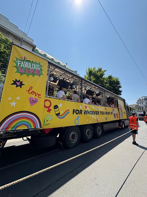 Happy Pride Month! Bei der Vienna Pride am 14. Juni hat got2b mit zahlreichen Gästen Diversität gefeiert und ein Zeichen für mehr Individualität und Akzeptanz gesetzt. Auf einem extra für dieses Event angefertigten got2b-Wagen versammelten sich die Henkel-Manager Birgit Rechberger-Krammer (Präsidentin von Henkel in Österreich), Tina Thallinger (Personalleiterin von Henkel in Österreich), Pia Van Saanen (Marketingleiterin von Henkel Consumer Brands Österreich), Jennifer Kola (Digital Manager Henkel Consumer Brands Austria), Nina Pettauer (Brand Manager got2b) und weitere Mitarbeiterinnen und Mitarbeiter, sowie zahlreiche queere Creator und Persönlichkeiten wie Michi Skopek, Orchidea.Luna, Ina Holub oder Philishaconditioner, und Allies der LGBTQIA-Community. Das prominente Line-Up mit DJ Spinelli, Felicia Lu, Metamorkid und DJ Robert Hitch sorgte für eine ausgelassene Stimmung am Truck, das dafür passende Haarstyling gab´s vorab im got2b Styling Corner im Pride-Village am Rathausplatz.Eine riesengroße Lichtprojektion auf der Fassade des Café Landtmann in der Woche vor der Pride-Parade machte ebenso positive Stimmung für das got2b-Engagement.